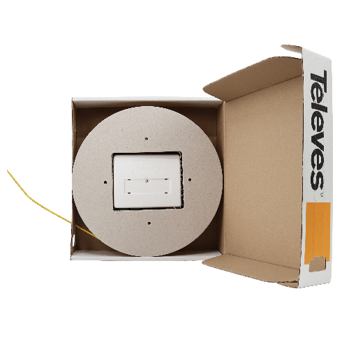 Por otra parte, la fibra se entrega en una caja dispensadora con una bobina en su interior, lo que facilita significativamente el despliegue del cable, reduciendo el tiempo de instalación y el riesgo de daños en el mismo.