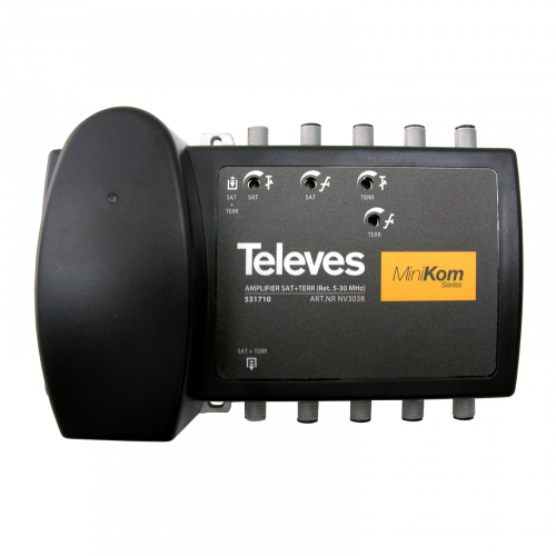 Central banda ancha MiniKom "F" de línea 1 entrada: C.Retorno/VHF/UHF/FI1531710Central amplificadora de línea (1 entrada y 1 salida), para sistemas SMATV/CATV. La amplificación separada garantiza la ausencia de intermodulación entre entradas, y atenuadores independientes por banda (terrestre y satélite).