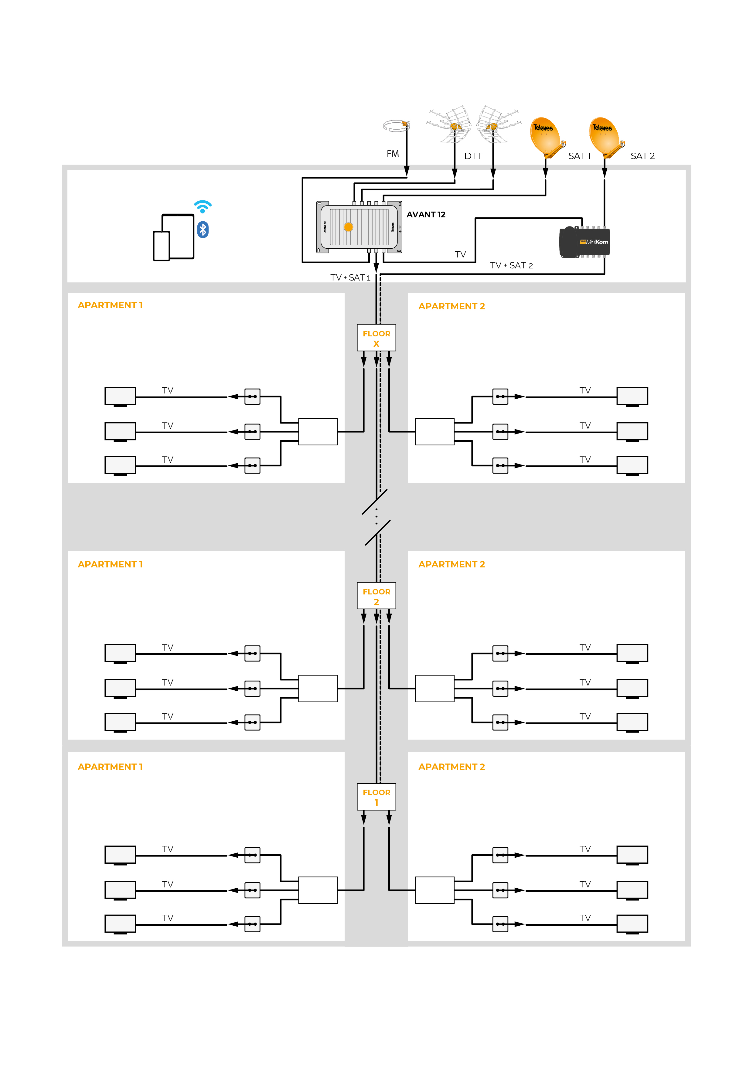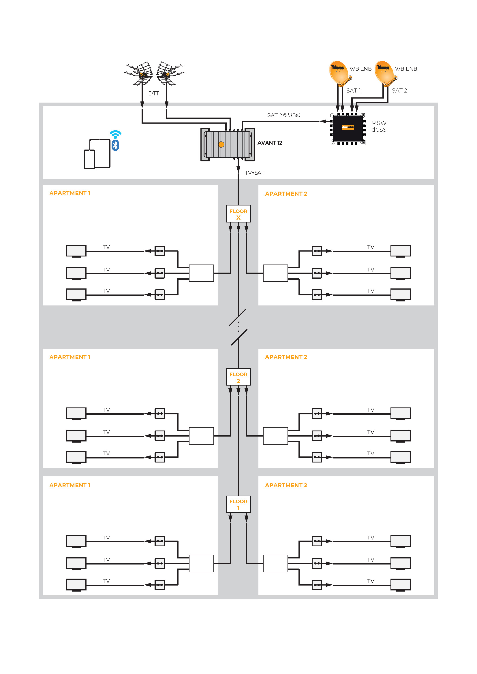 AVANT 12 PRO SAT programmable multiband amplifier for terrestrial/satellite, 32 digital filters and auto/advanced programming via ASuite (Bluetooth®)