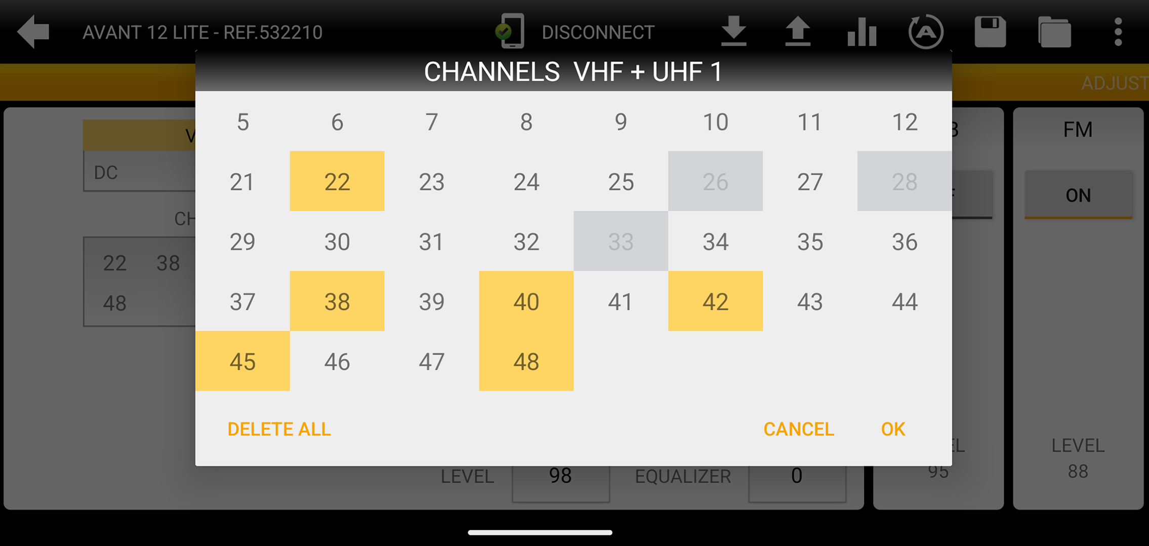 - Autoprogramming: with this function available in ASuite, the device performs channel assignment and level adjustment by itself, as well as activating the antenna powering when it detects that the signal requires it