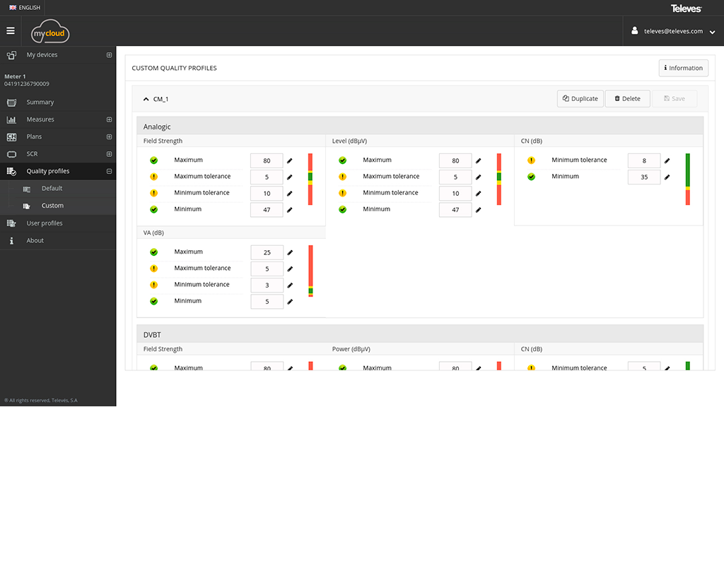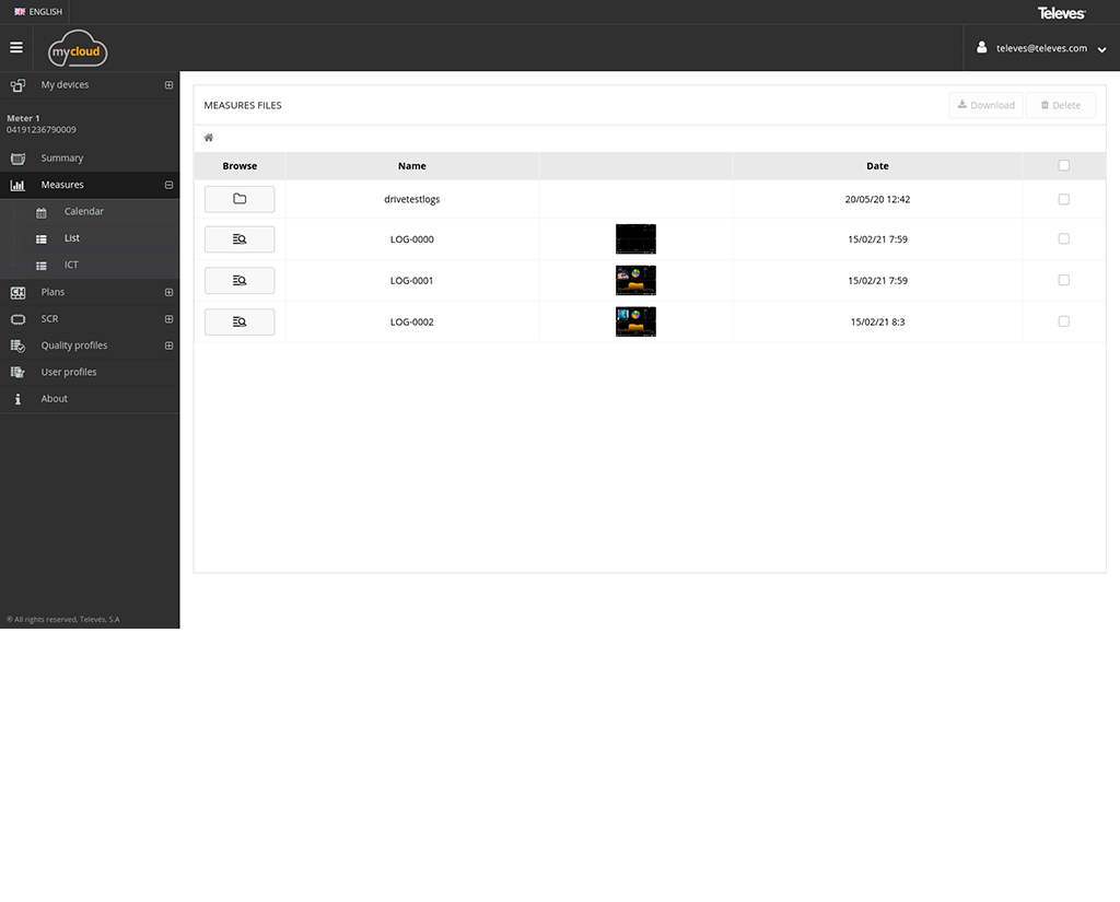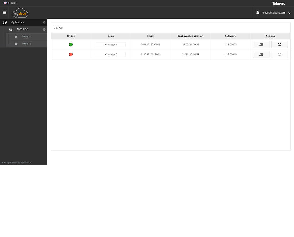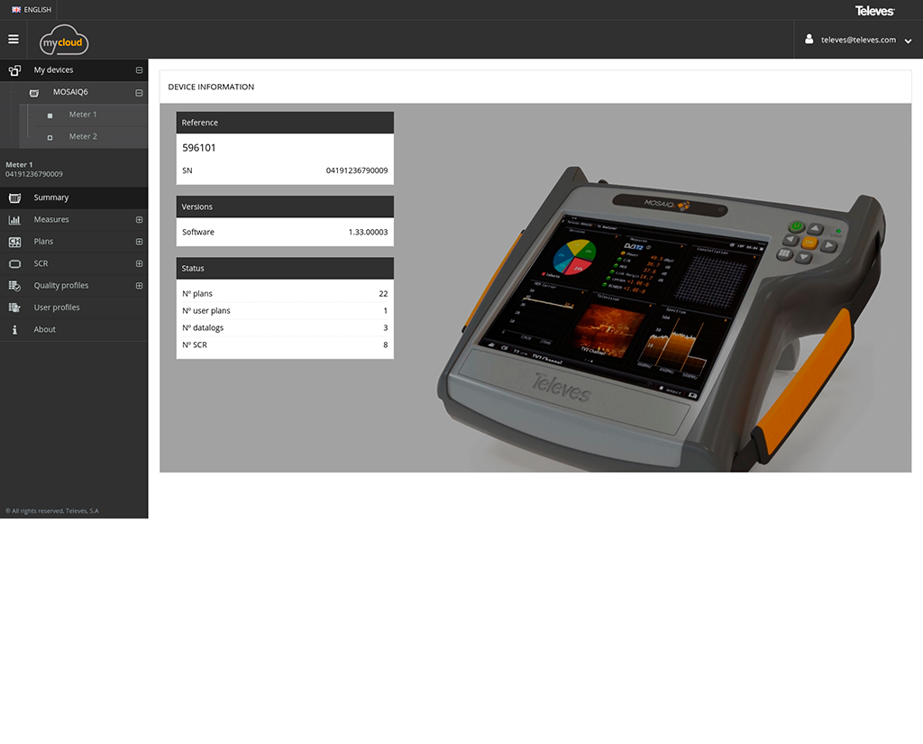 MyCloud es el portal web de medición que centraliza la gestión de todos los medidores MOSAIQ6 en la nube de Televés, a través una única interfaz accesible desde cualquier dispositivo.