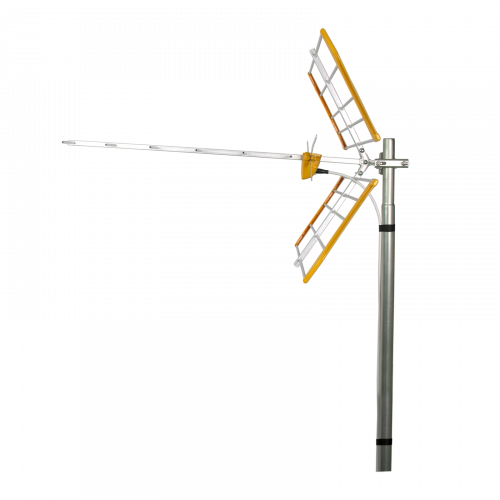 Antena L 700 18 elementos112120Una antena monolítica tipo Yagi de 18 elementos, con reflector en ángulo diedro y dipolo en doble V. Compacta y ligera, presenta una buena relación entre robustez, directividad y ganancia.