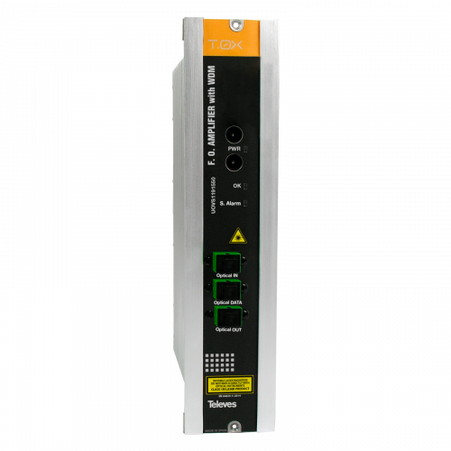 Dotado de WDM, tiene una entrada de 1310/1490nm con la que multiplexa la señal 1550nm amplificada, ofreciendo una salida 1310/1490/1550nm, haciéndolo apropiado para distribución de vídeo en redes ópticas GPON de tamaño medio. -