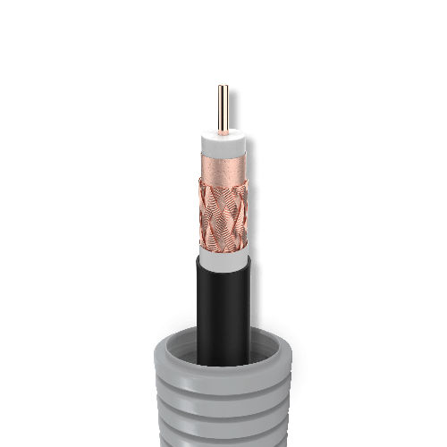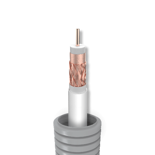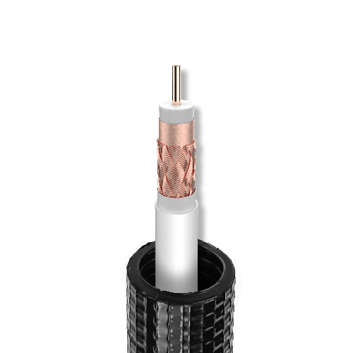 Cable coaxial T100plus, 16RtC Euroclase Dca y blindaje clase A, en tubo corrugado de PVC214119,214142,214141Cable coaxial RG-6 con vivo y malla fabricados en cobre (Cu/Cu) con una excelente cobertura del trenzado (75%) (Ref.214118). Es de doble blindaje, e incorpora una lámina antimigratoria. Un cable 16RtC, de cubierta LSFH (Low Smoke, Free of Halogen).