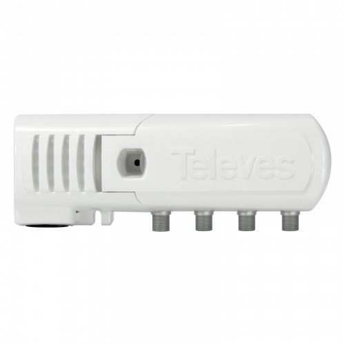 Amplificador de vivienda "F" 3 salidas (2+TV): VHF/UHF + C. Retorno activo5526Amplificador de vivienda de 3 salidas (2+TV), para ampliar la red doméstica de televisión. Amplifica la banda de terrestre, con paso del canal de retorno activo (operador).