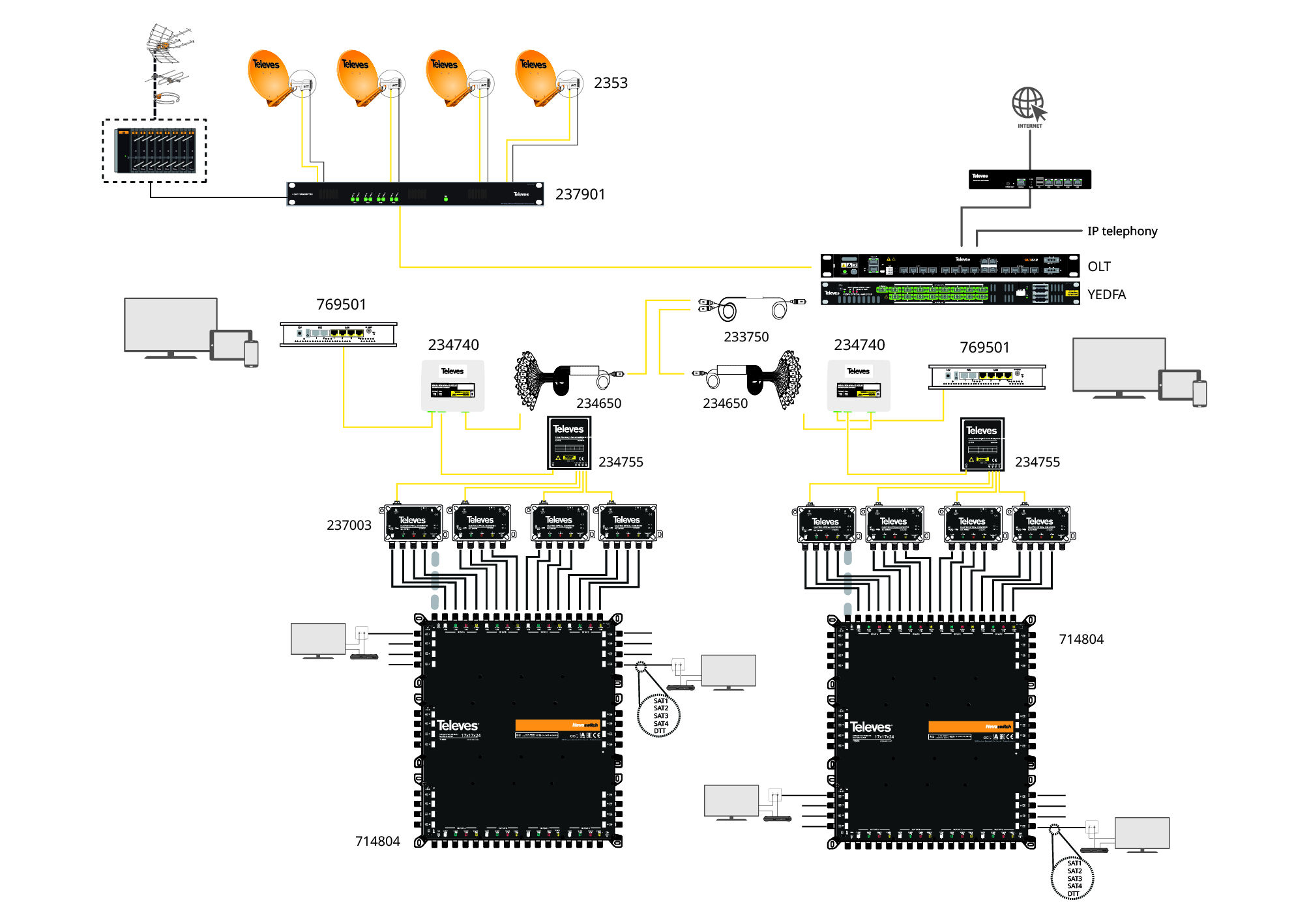 Dispositif passif conçu pour multiplexeur/démultiplexer deux signaux optiques : un à 1310/1490 nm (GPON) et un autre à 1550 nm (RF Overlay). Il optimise l’infrastructure en transmettant à la fois le signal de données GPON et le signal télévision sur la même fibre optique. Il peut également être utilisé pour combiner les signaux de deux émetteurs optiques Overlight, l’un avec une sortie à 1310 nm et l’autre à 1550 nm, permettant ainsi la transmission de 2 satellites et de la TNT sur une seule fibre. Son boîtier compact et robuste permet une installation murale ou sur rail DIN.