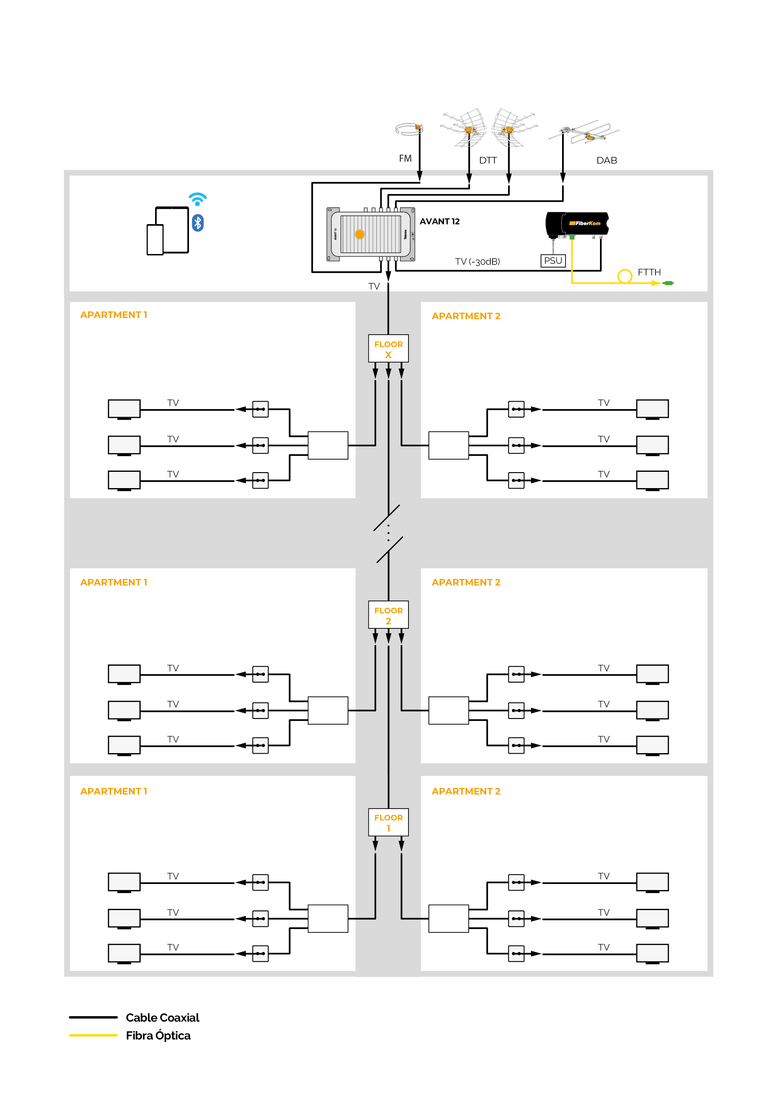 - Un seul appareil avec 2 modes de distribution: 4 entrées prenant en charge VHF/UHF, ou une entrée pour DAB et les 3 autres pour UHF