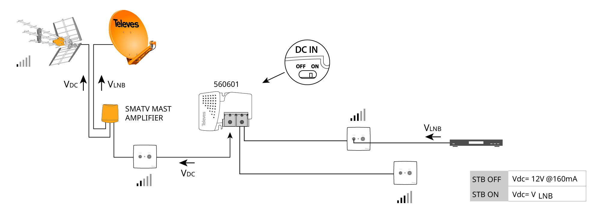 Intègre un filtre LTE700/5G et une téléalimentation via les entrées pour un préamplificateur ou un système BOSS. Détecte automatiquement en sortie l'existence d'un signal de gestion LNB (tension et 22kHz) généré par un récepteur, et lui permet de basculer sur l'entrée dédiée.