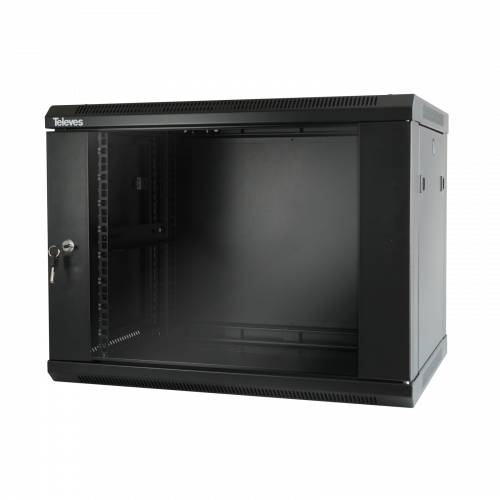 Baie 19" 18U 600x600 mm533118La baie 18U peut acceuillir des produits passifs ou actifs, en les maintenant visibles et protégés par une structure sécurisée (acier) et verrouillée. Compatible avec tout type d'installation (fibre optique, réseau de données, ou réseau coaxial), elle permet de regrouper dans une même armoire, différentes technologies. La baie est équipée de profils latéraux réglables en profondeur, qui permettent l'installation de différents types de panneaux ou d'équipements.
