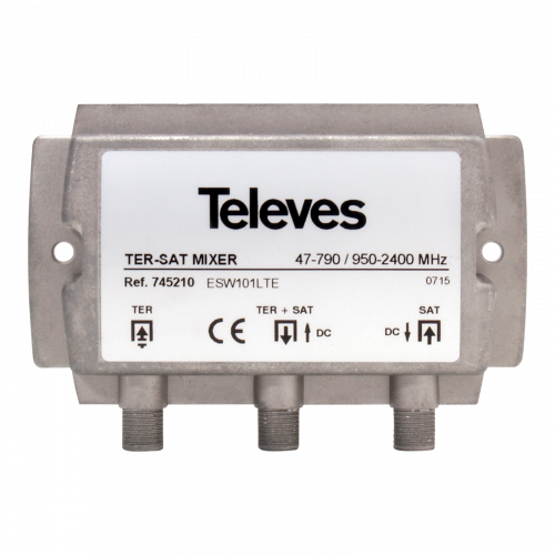 Mini-coupleur terrestre et satellite 2 entrées: MATV-BIS745220Mini-coupleur de 2 entrées pour distribuer un signal terrestre et un signal satellite sur la même ligne.