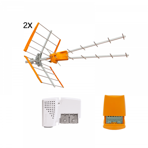 Kit: 2x Antenna V Zenit UHF (Art. 149221) + Amplificatore da palo, 4 ingressi (Art. 53552034) + Alimentatore 12V (Art. 579401)149291Il kit è composto da: