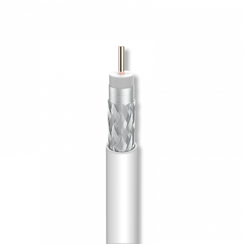 Cavo coassiale T100, 16VAtC Euroclasse Eca e schermatura classe A2126,212604Cavo coassiale RG-6 con conduttore interno fabbricato in rame e treccia in alluminio ramato(Cu/Al), con ottima copertura della treccia (77%). Un cavo 16VAtC, di doppia schermatura e copertura in Policloruro di vinile (PVC).