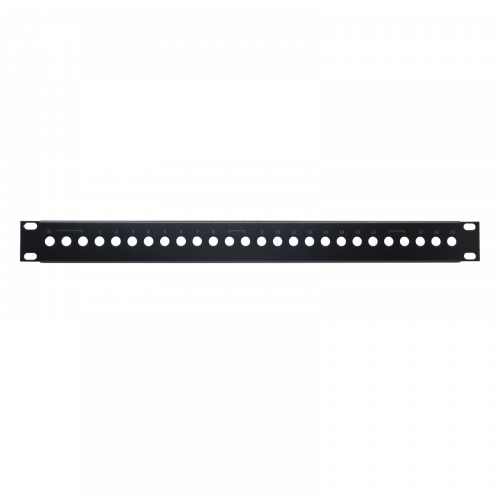 Pannello per Rack 19" 1U, con capacità fino a 26 adattatori "F"533230Appositamente progettato per l'installazione di partitori e derivatori della serie F, in quanto presenta la stessa distanza di separazione tra i connettori dei dispositivi di questa serie.