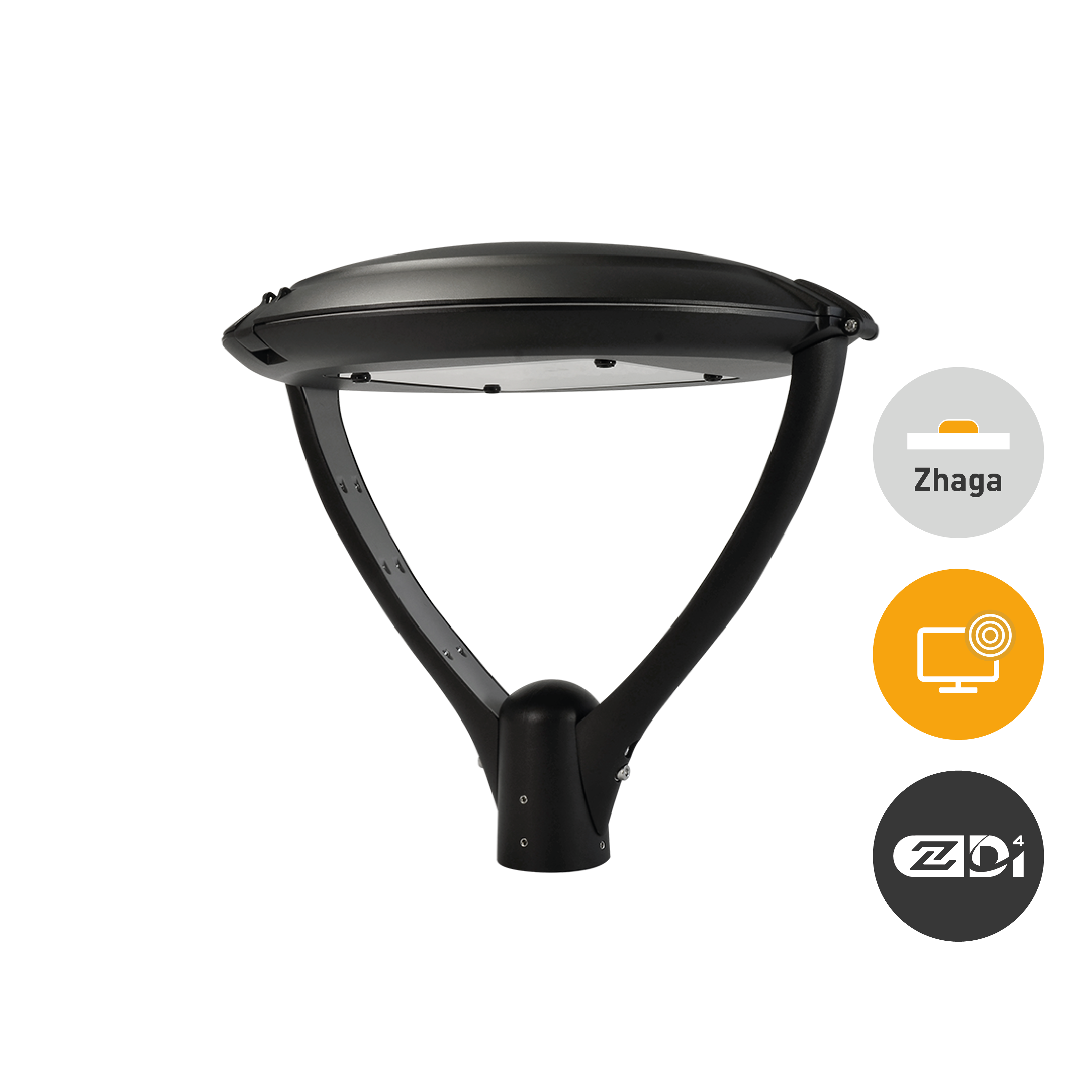 La sua estetica circolare, con una base centrata, rende questa luce simmetrica, ideale per illuminare piazze e parchi in un moderno ambiente urbano