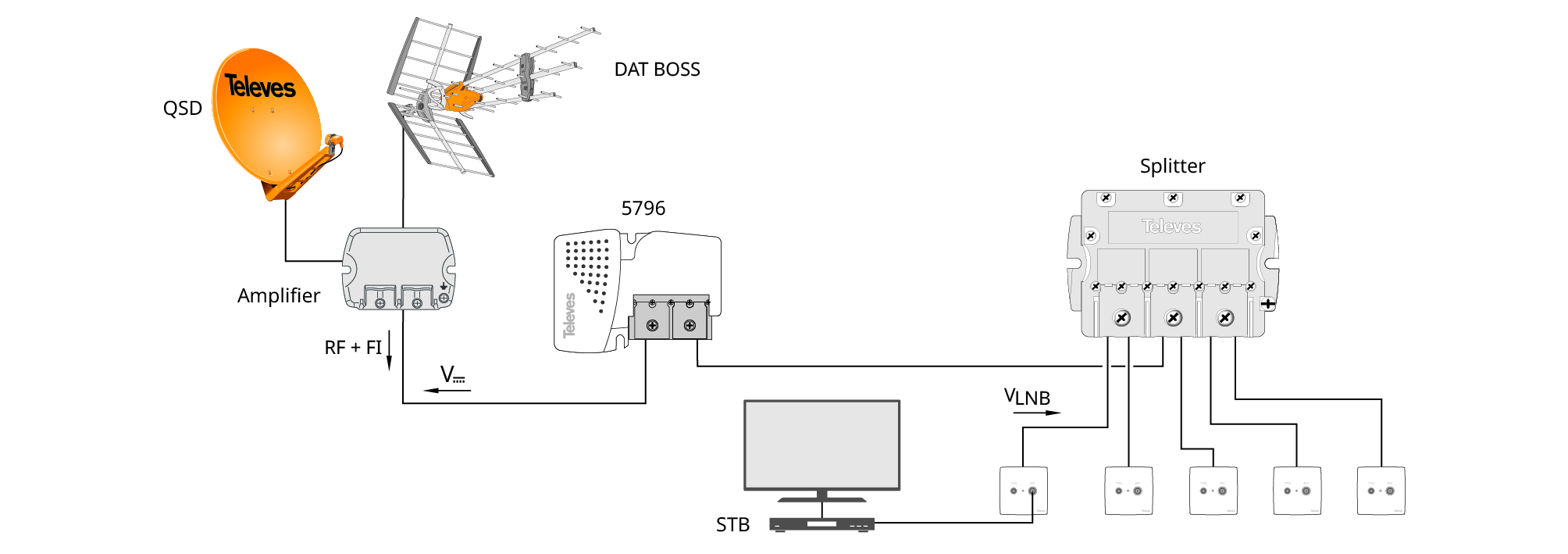- Oszczędność w kosztach: instalacja nie wymaga dodatkowych złączy typu F lub IEC