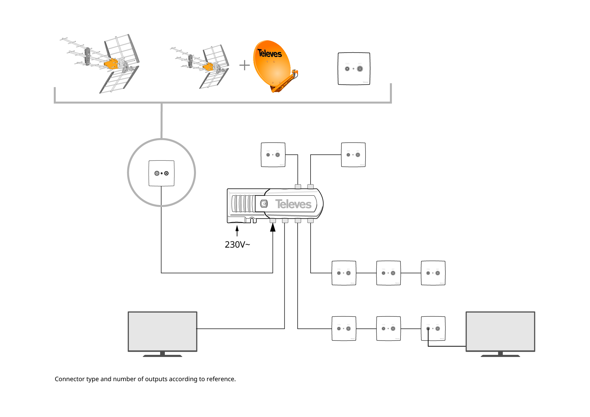 3-wyjściowy wzmacniacz domowy (2+TV) do rozszerzenia domowej sieci telewizyjnej. Wzmocnienie i korekta pasma naziemnego, z przejściem pasywnego kanału zwrotnego w celu umożliwienia komunikacji modemu abonenta z operatorem.