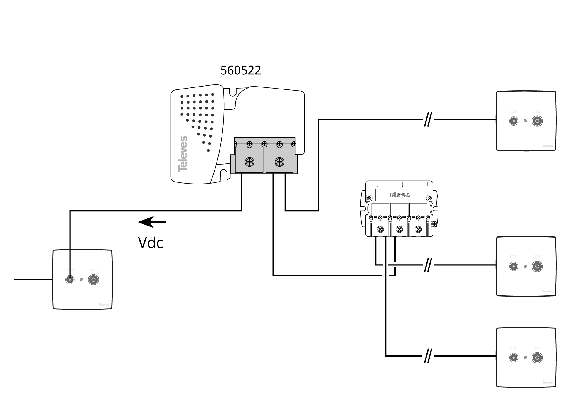 2-wyjściowy wzmacniacz domowy z automatyczną regulacją poziomu do rozszerzenia domowej sieci TV naziemnej.