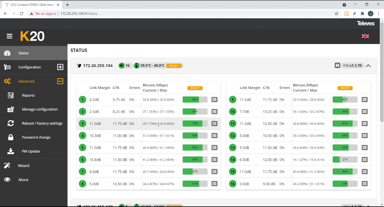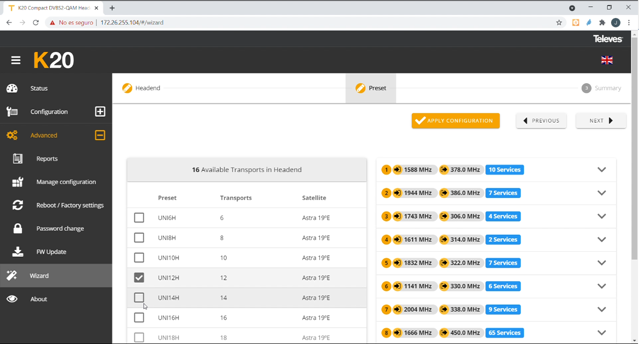 K20 Stacja czołowa kompaktowa DVBS2 - DVBC, od 8 do 16 MUX