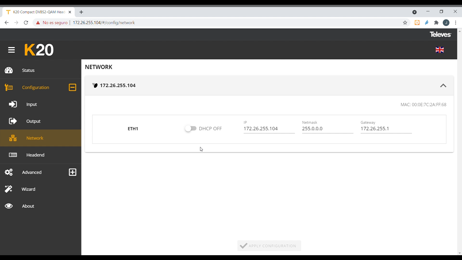 Stacja czołowa umożliwia jej konfigurację poprzez Interfejs sieciowy przez Ethernet lub Wi-Fi (wymagane akcesorium nr 216802).