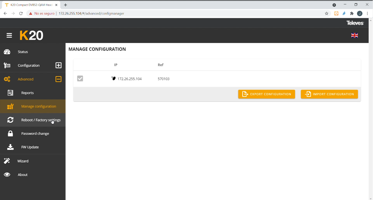 Interfejs webowy pozwala na eksport/import plików w celu powielenia konfiguracji jednostek, aby użyć ich w innych instalacjach. Funkcja ta pozwala skrócić czas typowych instalacji, dzięki posiadaniu wcześniej skonfigurowanego pliku. Eksport tych plików umożliwia również wykonanie kopii zapasowej konfiguracji stacji czołowej.