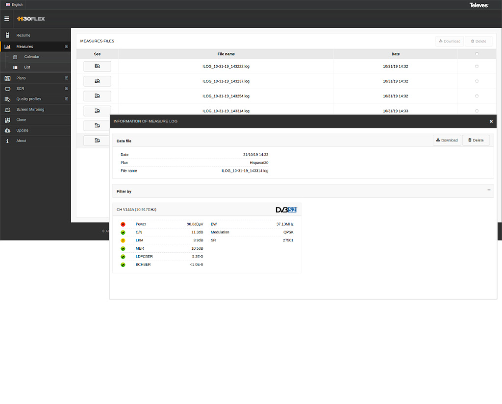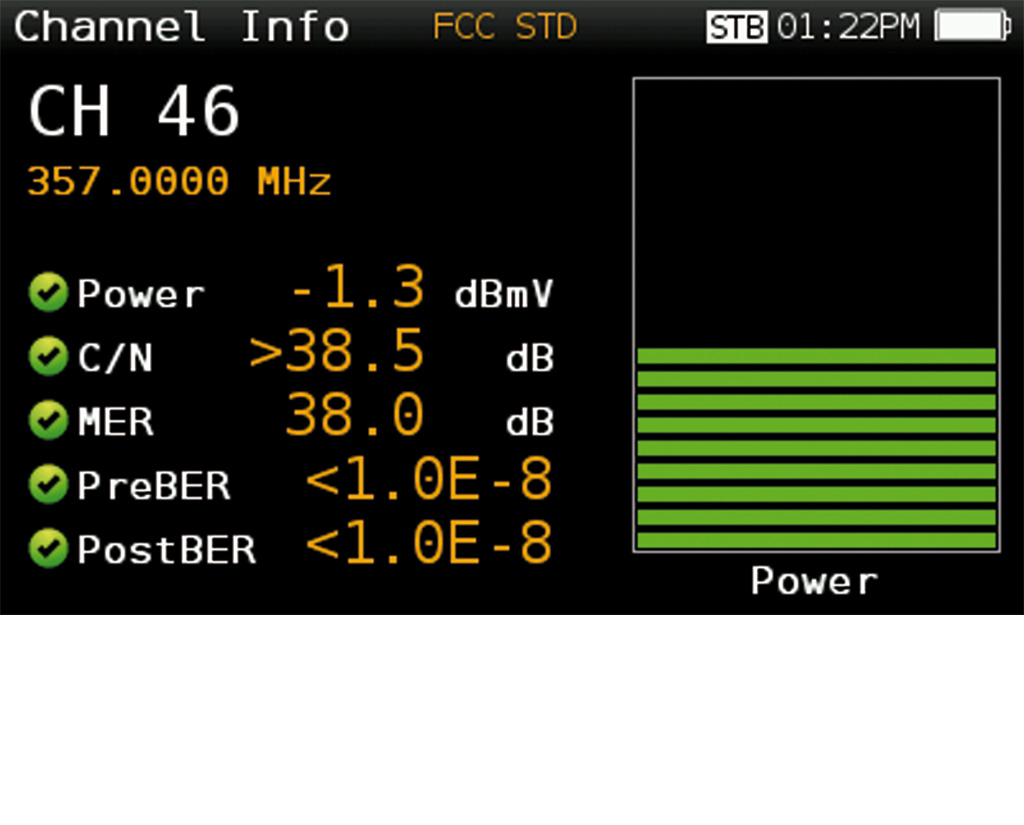 Czasami szybki przegląd informacji o kanale Ci wystarczy. Zaawansowany pomiar pojedynczego kanału za pomocą H30FLEX, automatycznie wykrywa rodzaj kanału, dostarczając informacji o poziomach V/A oraz C/N dla sygnałów analogowych, moc, C/N oraz pomiary jakości dla danych sygnałów cyfrowych. Wszystkie operacje są dokonywane za pomocą jednego przycisku a wszystkie odnotowane pomiary, na podstawie zdefiniowanych przez użytkownika progów oraz wskaźników OK/ Błąd, są łatwe do interpretacji, nawet przez mniej doświadczonych techników.