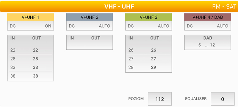 Po podłączeniu do jednostki sterującej możemy rozpocząć programowanie filtrów, klikając różne wejścia (IN – OUT) i wybierając zakres kanałów wejściowych do filtrowania. Modele PRO posiadają funkcję autoprogramowania, w której jednostka sterująca sama wykrywa kanały wejściowe i programuje filtry; wystarczy nacisnąć przycisk i odczekać kilka sekund. Po skonfigurowaniu filtrów możemy ręcznie edytować każde z wejść, aby dodać lub usunąć kanały lub zmienić typ zasilania wzmacniaczy masztowych lub inteligentnych anten.
