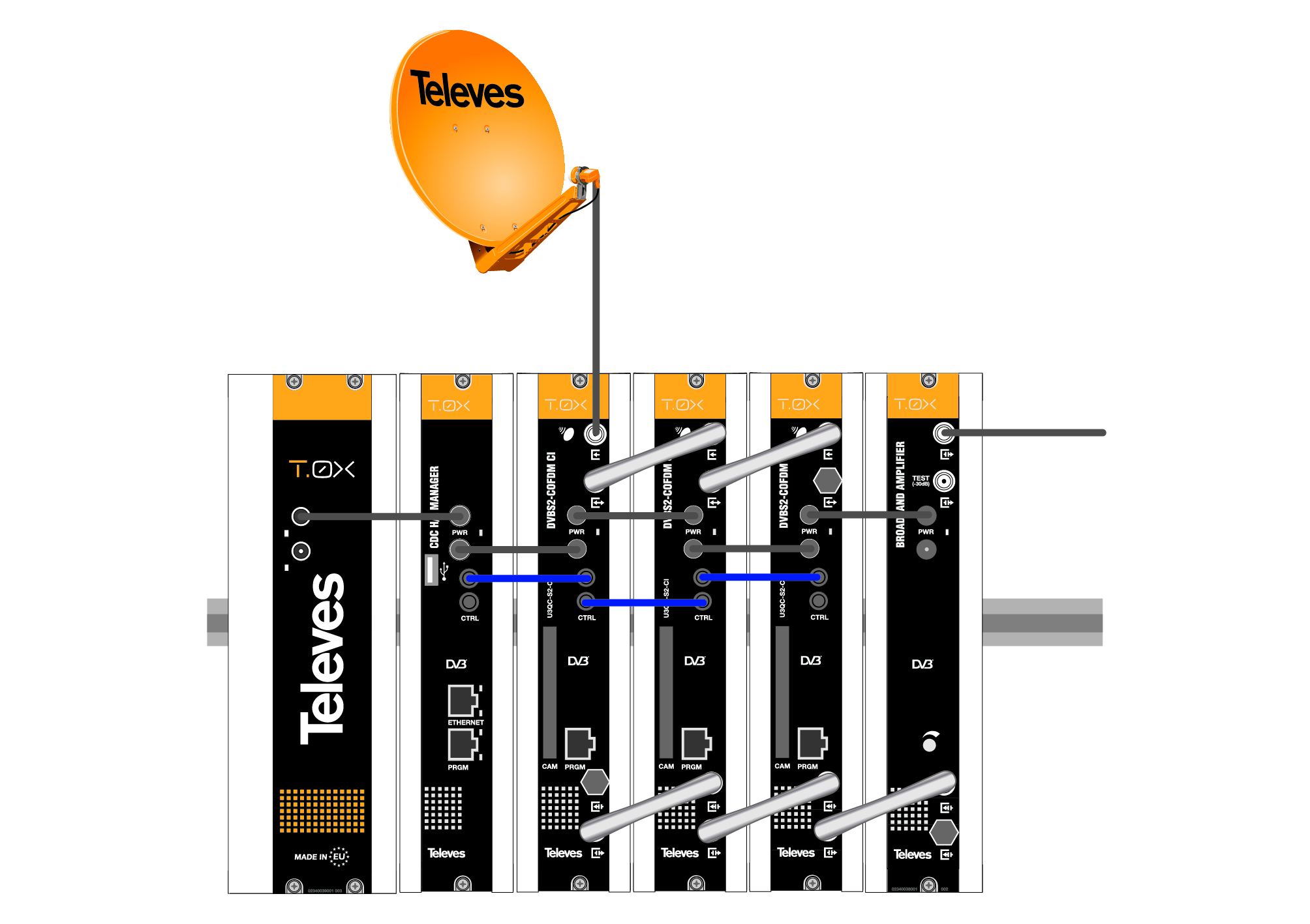 - Dispõe de duas entradas de sinal, o que permite misturar os canais processados da sua propria cabeceira e canais de outra procedência