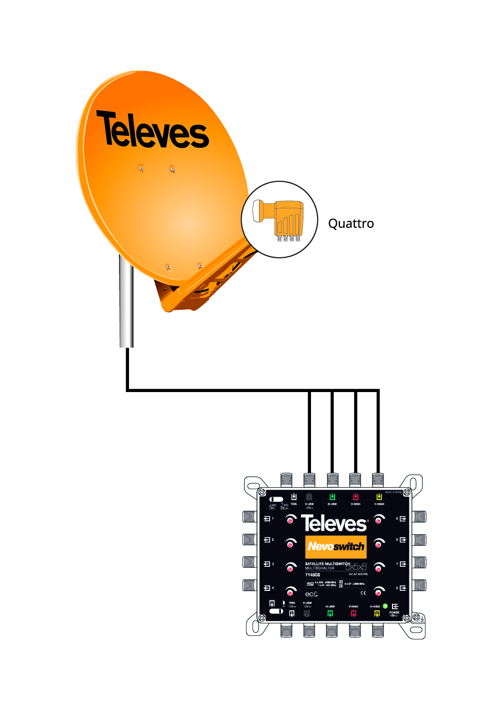 LNB offset Quattro 4 saídas: Ha-Va-Hb-Vb