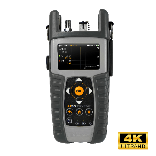 H30Crystal är också en skalbar multistandardutrustning utformad för att mäta DVB-S/S2, DVB-T/T2, DVB-C, analoga kanaler och returtrafik. Med lätt nedladdningsbara programvarulicenser kan du uppgradera ditt instrument med nya alternativ. Dessa funktioner, tillsammans med ett brett utbud av innehåll, gör instrumentet till en multifunktionell utrustning, som är idealisk för installationer, underhåll och felsökning av koaxiala och fiberoptiska nätverk. Allt detta i bara en enhet!