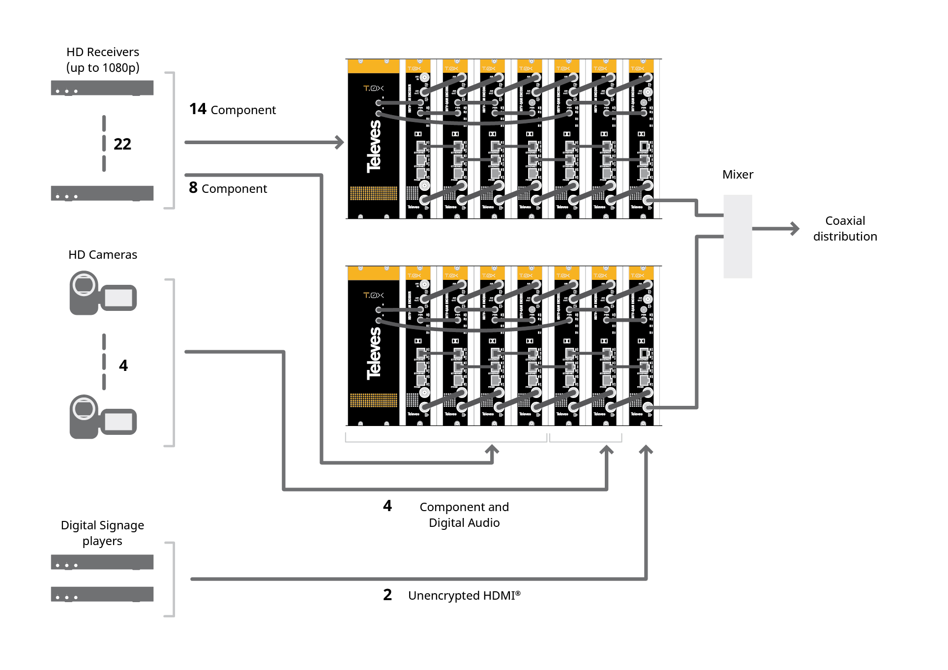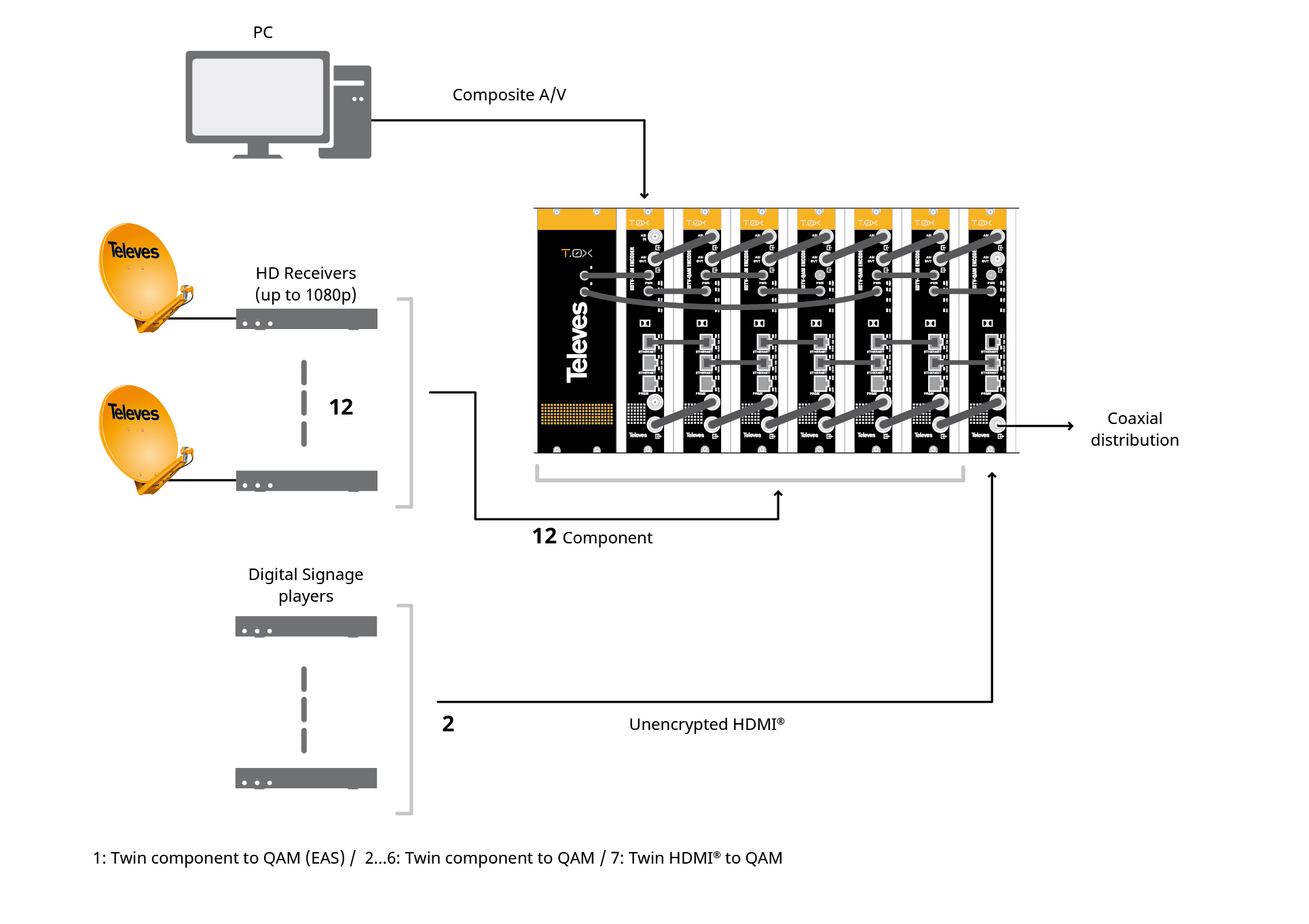 | References | QUAD COMPOSITE TO QAM | DUAL COMPONENT TO QAM | DUAL HDMI®/ COMPONENT TO QAM | |||||||
