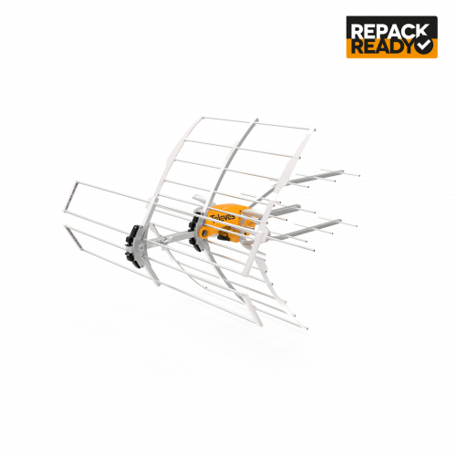 The antenna is able to receive very weak signals while at the same time avoiding overload caused by very strong signals. The Ellipse Mix is a high gain directional antenna designed to offer stable and high quality reception of High VHF and UHF only (RF channels 7-36) in mid to long-range receiving scenarios despite continuous changes in weather and transmitting conditions thanks to its exclusive and intelligent built-in TForce amplifier. The Televes proprietary triple boom design ensures maximum raw gain in a compact and install friendly form factor suitable for outdoor or attic install. No additional preamplifier purchase is required as the antenna includes a best-in-class very low-noise TForce preamplifier built in right at the dipole with automatic gain control, plus FM and cellphone signal filtering adapting to any installation situation.